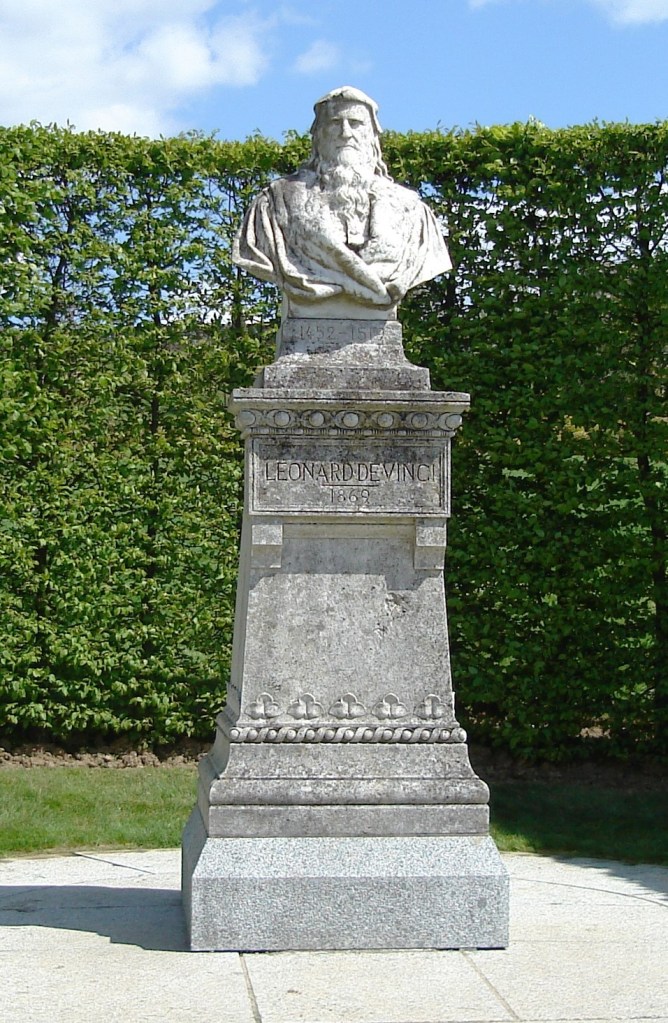 After the chateau and the crowds, I went back to the comparatively peaceful main road, waited under a little roadside shrine bedecked with flowers, and soon caught the bus to Amboise – saying ‘bonjour’ to the driver as I paid my 1.50 euro, of course. Amboise is on the Loire and I sat by the river to eat the sandwich I’d brought with me for lunch. It’s a big, wide river and quite fast-flowing, and it was a lovely spot for a picnic with the chateau high up above the town behind me. I climbed up the path to the chateau in the early afternoon, and more by luck than judgement missed the crowds because it was still lunch-time in France. Unlike at Chenonceau, I had the place almost to myself. Chateau d’Amboise is regarded as one of the very important royal castles of the French kings. It certainly has magnificent views from its terraces and gardens, and some very grand rooms inside. Leonardo da Vinci is buried in the chapel at Amboise too – I saw his grave. Leonardo was invited to the French court of Amboise in the last years of his life (early in the 16th century) and given a nearby manor house called Clos Luce, which has become as much of a famed tourist centre as the chateau itself, with stories of the man and his amazing inventions. Having seen an excellent exhibition of Leonardo da Vinci’s life and works in the Auckland Museum a few years ago (I think it came to Adelaide too?) I didn’t feel I needed to go through the house in Amboise, because by the time I’d explored the chateau and wandered up to Clos Luce, the hordes of tourists had descended again. The little streets around the area were very attractive though, so I just enjoyed the walk and the views.