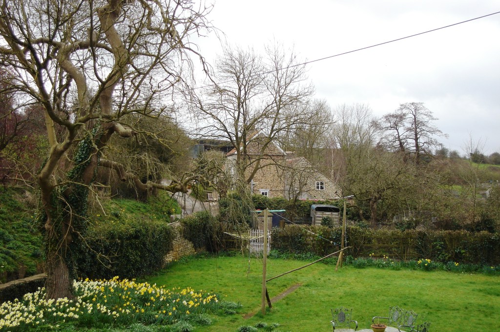 Daryl’s friends David & Sophy met me at Cob Cottage – an heroic effort at 7am on a cold Sunday morning. And I’m now completely in love with my new English home. Flowers, wine and chocolates made me feel welcome … thanks Daryl! From the entrance, a charming, comfy sitting room leads into a dining room and sunny living space overlooking a green lawn, blossom trees, patio area and pots full of bulbs – and through the bay window the first morning there were even two plump grey squirrels bouncing around the garden. How English! There’s a working farm almost directly over the back fence, so the smell of country hay and cows adds to the atmosphere. Just beyond that, the mighty M4 motorway stretches across the landscape – but it’s not visible from the cottage and not really intrusive.