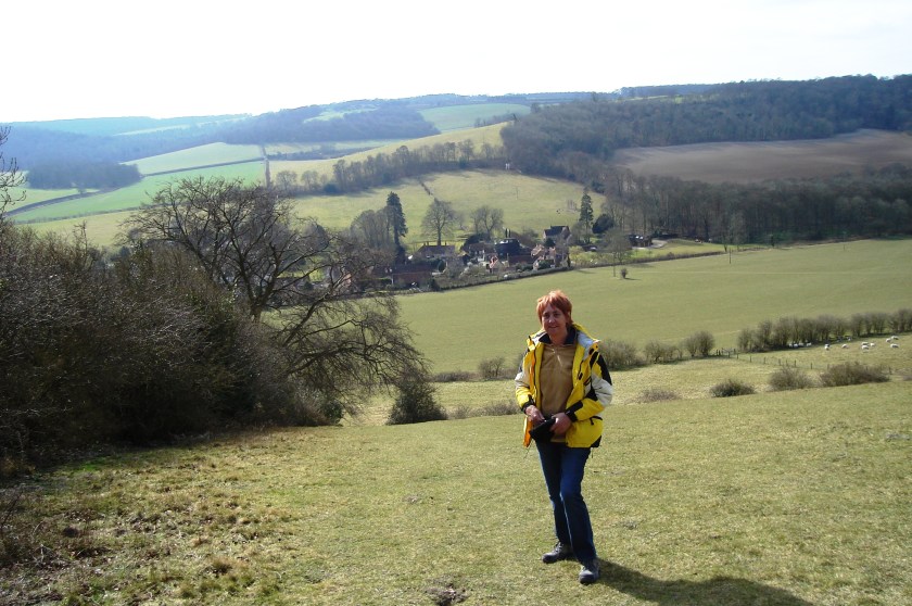 Had another great English experience … walking through some beautiful countryside in Oxfordshire with the East Berkshire Ramblers. This walk was very much up hill and down dale in the Chiltern Hills, some of it quite steep in places and I had to pause frequently to take in the view (& maybe just a bit to catch my breath..). It was the best possible day for walking – clear sunny sky, green fields, woolly white sheep, footpaths through woods and open fields, little stiles to climb over and some of the prettiest little villages, including … yes … the Vicar of Dibley’s village. It’s called Turville and it’s where they actually made the series. The church, the cottages and the village green are all there. Another equally charming village was Fingest where we had a mid-morning break in the old churchyard. The walk also went right past an old windmill which everyone told me was where the film ‘Chitty Chitty Bang Bang’ was made. This area seems to have a particular claim to fame for films and TV shows … not hard to see why if the producers want the archetypal English village and rolling countryside. At the end of the walk, a small group stayed on for lunch at the Golden Ball pub in Lower Assendon. Since I was in the car with the walk leader, I was included. David had kindly picked me up for the drive to & from the walk area. Everyone on the walk (about 35 people, mostly retired (but all super fit) was as friendly and interesting as everyone else I’ve met since I arrived. I’ve been invited to join them for as many walks as I want while I’m here.