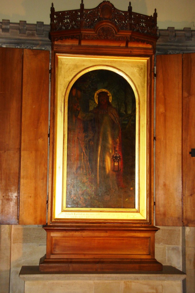 From Exeter, we wandered through some lovely streets and lanes, past the Sheldonian Theatre and Bodleian Library, other museums, colleges and one of the tiniest little pubs I’ve ever seen – teeming with students intent on an ‘Education in Intoxication’ as a chalkboard in the little courtyard invited. Next stop was Keble College, larger and more ‘modern’ than some (only about 300 years old, I think). It was founded by some very pious and sombre Christian men of the time, so has an enormous chapel – more like a Cathedral. The jewel in the crown, though, is a little side chapel housing one of the most famous religious paintings in Britain, ‘The Light of the World’ by William Holman Hunt, who was a student at Keble. This painting took me right back to my very own olden days of church and school … it was the picture in my first prayer book, and must be known to everyone with any shred of Anglican upbringing in them. Amazing to see the real thing. It’s so famous that they had to make a copy to hang in St Pauls -and you have to pay to see the copy!