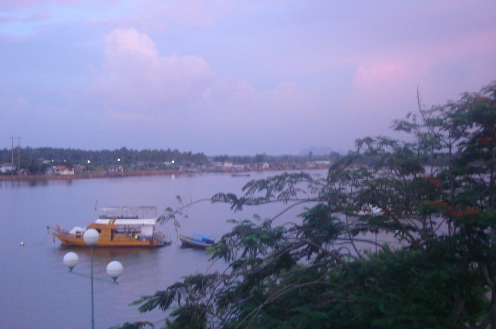 I stayed at a very nice hotel in Krabi right on the river front and had the sort of view you could pay millions for in some parts of the world. But Krabi is basically a pleasant fishing town and a stop-off point for the islands and resorts. I felt completely at home there. By staying in a more up-market hotel I thought I might actually be growing up at last, but it didn’t take long to succumb to the lure of the little backpackers’ cafes, the night market and travellers’ shops that dot the town. Just my sort of place! It was so easy and pleasant to sit with a cold beer in the tropical twilight and just watch the boats on the river. Sleepy, warm, and beautiful.
