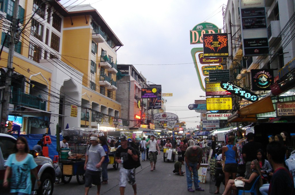 Khao San Rd is the legendary backpacker, hippy hang-out area of Bangkok. Full of guesthouses, bars, restaurants, street stalls full of travellers’ clothes, 60’s music and people of all ages and nationalities wandering around soaking up the laid-back atmosphere. Have to confess I still enjoy it – brings back lots of memories of my own happy days backpacking through Europe, Middle East, India, Nepal, Indonesia etc over many years … different faces, but the same reggae music, Beatles, tie-dye shirts etc. Had lunch in a street-side café and watched the world go by.