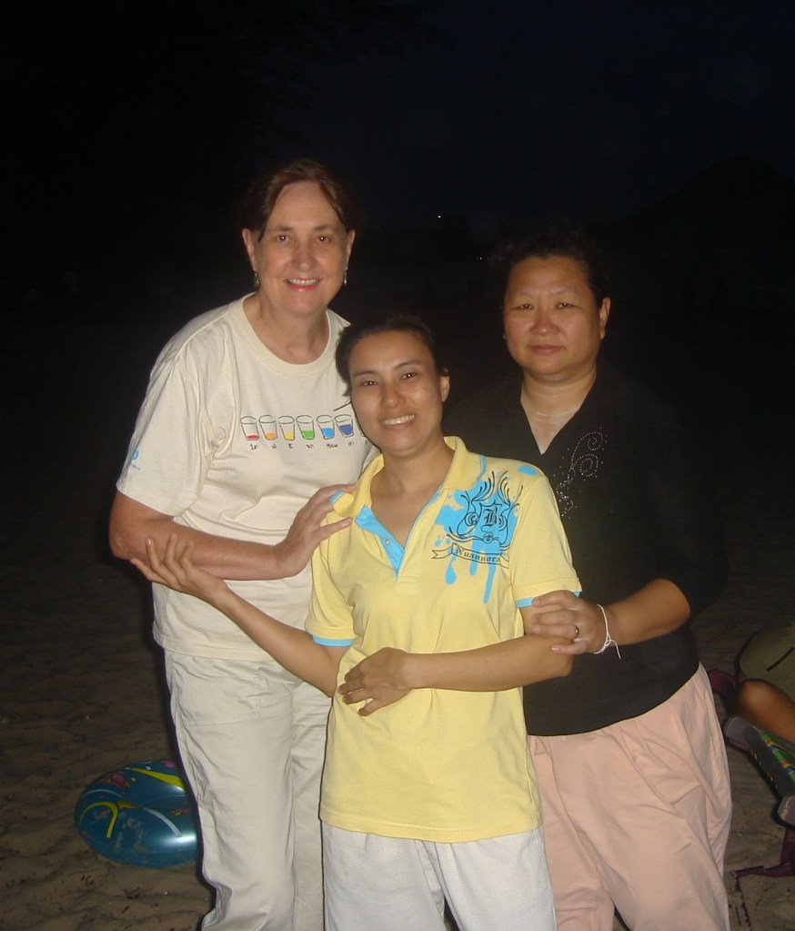 One of Pik’s aims in taking me along was to drop into another Parents Group camp for kids with disabilities. It was good to see Sangplern again, one of the parents I first met back in 2002-03 in Thailand, and who we brought over to observe services in Australia. Like Nok, she’s another absolutely amazing woman who’s doing some great work with families and other organisations. There were about 30 kids at this beach camp, plus families, plus volunteer students from one of the Universities. It all looked incredibly exhausting to me … staying in fairly basic wooden dormitories with children of varying ages and varying degrees of disability.
