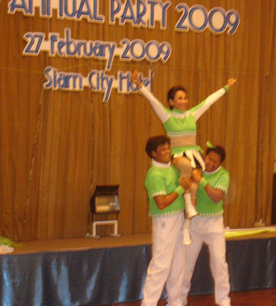 Friday 27th Feb was the ILO Annual Office Party. Held at the Siam City Hotel, it turned out to be a really fun night with a sumptuous buffet dinner, entertainment and party games(!) – and most people came decked out in something green. The ILO has a “Go Green” campaign happening – green jobs etc – so this was the theme for the night. There are a couple of other Aussies working amongst the 200 or so staff of the ILO – Ray, who’s kind of my supervisor, and Rod, who’s new like me and very much on the same wave length about the cumbersome nature of the bureaucracy within the organisation … though we’re trying not to be too cynical yet. Rod’s wife, Rose, also came so we had some good laughs together at the fun and games arranged by the ILO (Thai) Social Committee.. We “passed the watermelon”, played musical chairs & leaped on to gentlemen’s laps when the music stopped, clapped along with the Pom Pom Cheer Leaders and enjoyed the various magic shows, singing duos, Thai peacock dance etc …all this to loud 70’s disco music! The whole evening was over by about 9.30pm, as seems to be the custom here. Start early, finish early. Glad I went.