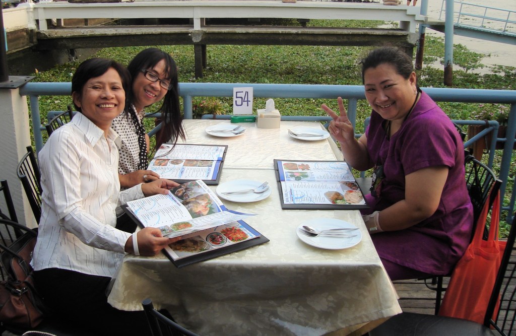 One evening earlier in the week (Tuesday I think?), a couple of other Australian women and I were invited out to dinner with Pik, my Thai colleague, and 3 of my friends from the government here (Varunee, Achara and Ar, whom I’ve met during previous work in Thailand.). We went to a rather swish place right on the river near the Grand Palace – actually sat on a deck that jutted out over the river. The Thai people are so incredibly kind and generous, and lots of fun as well. Always lovely to be with them.