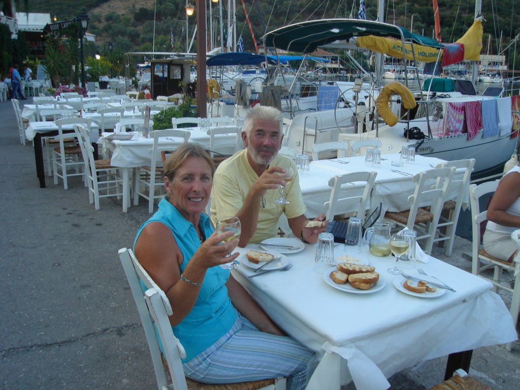 We set sail the same day and for the next week just drifted around – dropping anchor in secluded bays, or nosing our way in between yachts of all sizes to tie up at a little wharf. Being able to dive overboard for a quick swim, or jump ashore for a beer or wine was bliss, as was the Greek seafood, salads and other delicacies at the little tavernas. (Greek salads take on a totally different feel in Greece … one can never have enough olives, tomatoes and fetta….)