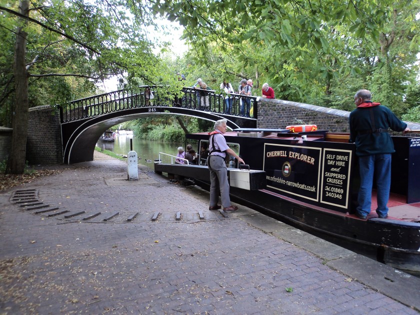Once a year, Oxford opens all its doors to visitors.  It’s a great chance to see the great Colleges and other buildings, free of charge.   They also do lots of guided walks around more unusual parts of the city.  I’d booked for the walk along the Oxford canals and waterways to learn about the economic and social importance of the river and the canals.    This turned out to be another treasure with a fantastic guide who actually lives on a river boat and is a river historian.   We heard all about the lives of the boatmen in the days when the canals were the highways of the country, with barges pulled by horses bringing all the manufactured goods down from the midlands and north of England for shipping to the world.  There’s a maze of these canals throughout England and it’s one of my ambitions to do a trip in a narrow boat some time.   The parts of the city bordering the canals were rough working-class areas in days gone by – and there are still many signs of the old way of life with horse stables, pubs with names like The Nag’s Head, and poorer little cottages.   But the walkways are now quite attractive leafy lanes and much of Jericho, the older part of Oxford, is a lively student quarter.   Oxford University Press still operates its printing works here too.