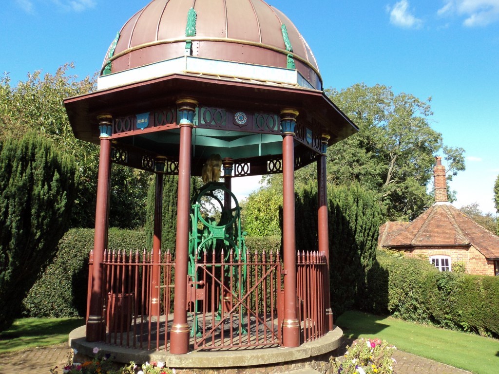 The Maharajah’s Well at Stoke Row, near Henley, is a fascinating piece of sculpture and engineering in an English village – and has an extraordinary story.    It was the gift of the Maharajah of Benares to Stoke Rowe in the mid-1800’s.   It looks very ‘Indian’ with gilded domes and a decorative elephant on top, so is quite out-of-keeping with the rest of the village.   However, it did serve a valuable purpose for over 70 years in helping this poor village community to get water without walking miles with heavy buckets.  The Maharajah was grateful for the assistance he’d been given by Great Britain, so when he learned of this village’s plight, this was his return gift.   The well is 368 feet deep (taller than St Pauls Cathedral and twice the height of Nelson’s column).    It was dug by hand, with only one man at a time being able to fit down the shaft.   It was renovated in 1983, and the Queen owns a replica of it.   Incredible – and a bit bizarre…