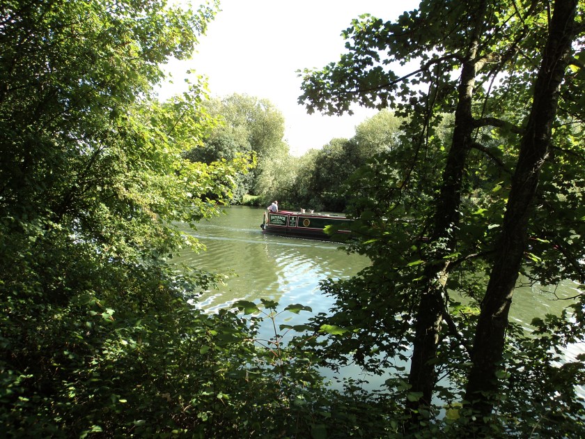 But I haven’t spent all my time in Oxford.   On Wednesday 24th, I walked from home in Cholsey along the Thames to Wallingford.   It took about 2 hours – a lovely walk through meadows and woods, passing boats, watching swans and avoiding cows.   It was quite a warm day so very pleasant to sit for a while with a coffee and a book when I got to Wallingford.   I then rambled around the remains of the old Wallingford Castle.  There’s not much left of the old stone ramparts, but the whole area is now a very attractive park and garden which the good folk of Wallingford were out enjoying in the sunshine.    I like Wallingford with its old market centre, lovely antique shops, up-market dress shops, great tourist information centre etc– but after several hours of walking, I caught the bus home and hopped off just across the road from my place.
