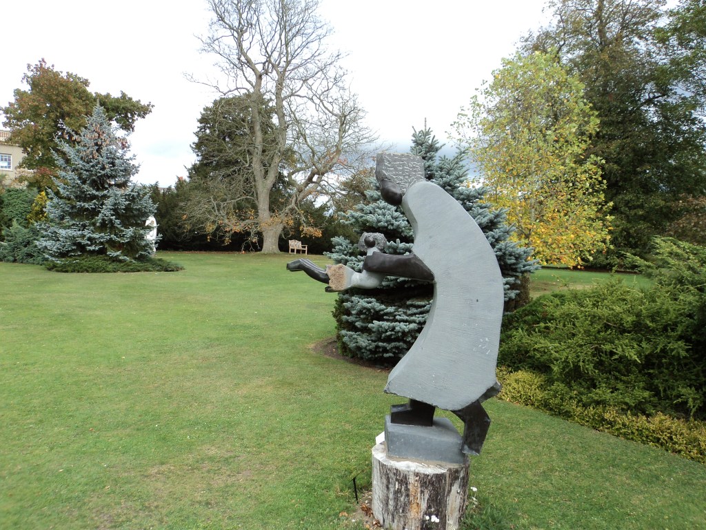 The following day (Wednesday 12th), Pauline came up to Cholsey and we drove to Waterperry Gardens, near Oxford.   This place had been highly recommended to me by the man who led the Cholsey walking group.  He’s a well-known botanist and natural history expert in the area, so I figured it must be good – and it was.   It’s a large flower, fruit and sculpture garden on the original site of a 14th century stately manor which has had several reincarnations through the centuries, one of the most recent being a Ladies Horticultural College in the early part of the 20th century.   Apart from the beautiful gardens, there’s a plant nursery, an art gallery, a garden and gift shop, tea-room and an amazing little museum housing a private collection of old and unusual farm tools and rural bric-a-brac.   The elderly gentleman who put the collection together was there and we spent nearly an hour being entertained by his stories and demonstrations of how some of his strange but practical things worked.