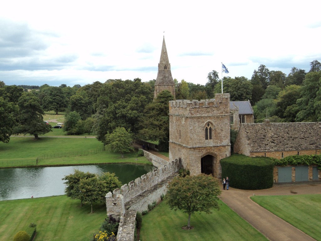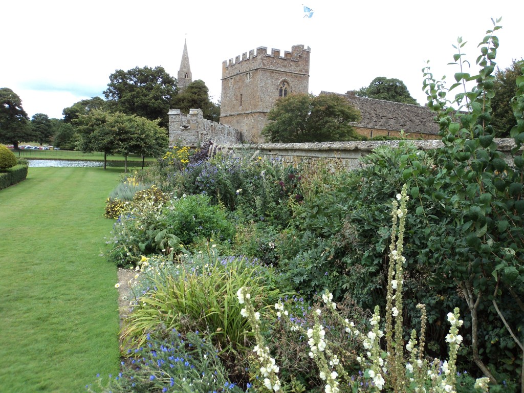 From here we drove to Broughton Castle, near Banbury, about an hour’s drive away.   Broughton has been the stately home of the Fiennes family for several centuries – and yes, Ralph Fiennes is a grandson of the current Lord who owns the Castle.   It’s a lovely old castle, not too overwhelmingly large, surrounded by a moat and pretty gardens and it too has been the setting for many films and TV productions, including ‘Shakespeare in Love’ and others I’ve forgotten.    Various kings, lords, ladies and others have stayed in the castle’s bedrooms over time, or given paintings, or somehow contributed to the history and life of this lovely place.   I think I’d have been happy to have been born in Broughton Castle….