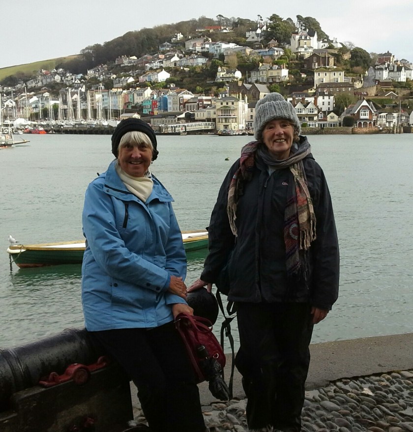 During Pauline’s visit, on a bitterly cold day, we made a trip down to Dartmouth and took a boat ride up the River Dart – past the Royal Naval College where Mal (my brother) visited a few times while he was at the Royal Naval Engineering College in Plymouth in the 1960s. The town appeared to be another lovely little place to spend some time, but with a feeling of snow in the air we were keen to find a bus and escape the cold. Stopped off at Brixham on the way home and enjoyed hot chips and hot chocolate in the Jolly Roger – or whatever it was called. (A kitschy tourist cafe decorated with skulls, crossbones etc. At least it was warm.)