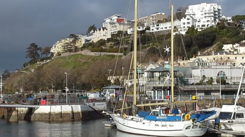 A couple of days later, I took another train down to Torquay in Devon, on the English Channel. This new home turned out to be rather glamorous … high on a cliff top overlooking the town, the harbour and the sea. Not exactly the French Cote d’Azur, Torquay and the surrounding beaches are still known as the English Riviera. No doubt beautiful (though crowded) in summer time, it still had lots of seaside resort charm … even in February. Especially after cold, grey Berlin.