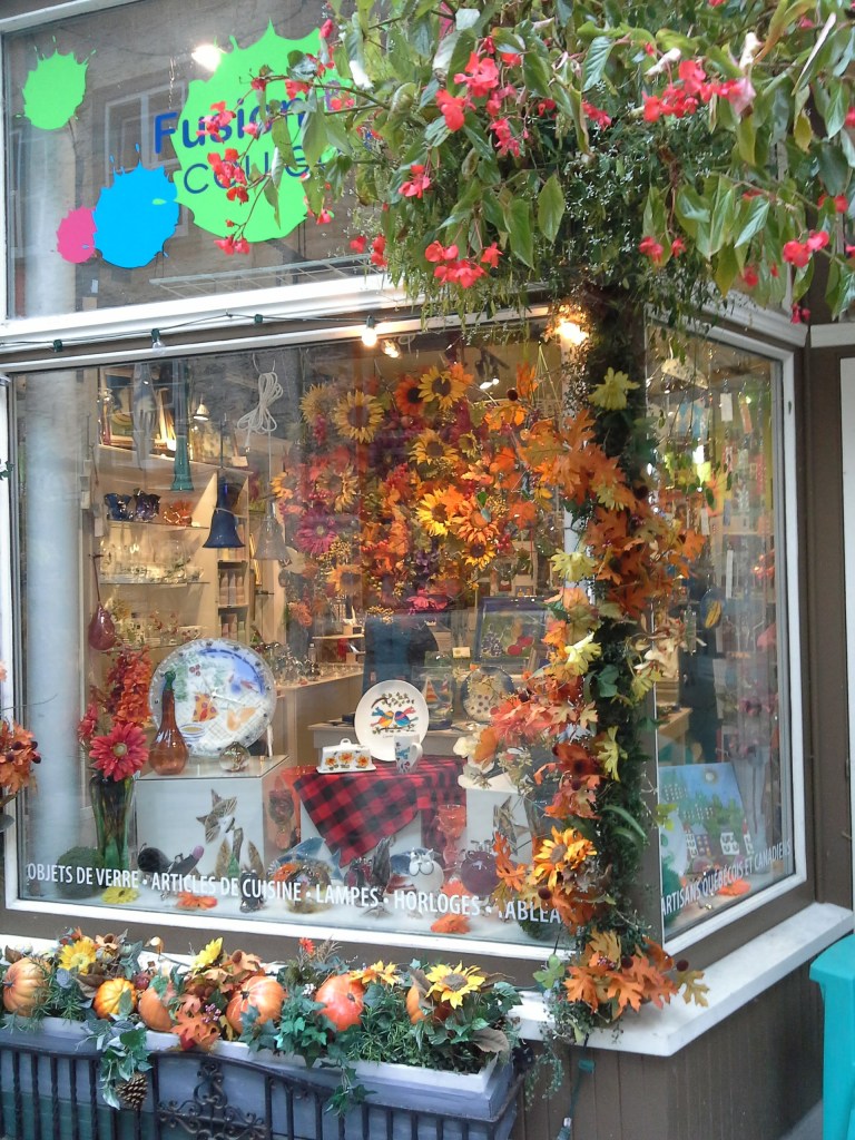 Despite hills and lots of stairs, Quebec is an easy city to walk around. Towering over everything is the magnificent Château Frontenac hotel…said to be the most photographed hotel in the world. (Somehow I didn’t seem to take one …) With its turrets and windows and sheer height, it is quite lovely, and probably mega-luxurious inside. It sits on Dufferin Terrace, a wide terrace overlooking the lower part of Old Quebec and the Harbour. Cold and windy, but breathtakingly beautiful. Quebec is built on two main levels…upper and lower towns. There’s a funicular railway down the cliff, but it’s not too far to walk down the stairway. The lower part is filled with very tempting shops, all beautifully decorated with flowers and window displays…but, as everywhere, just over-run with tourists. Can’t imagine what it must be like in summer.