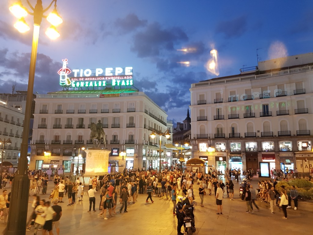 It was 50 years since I was last in Madrid (back in the mid-60s in the old Kombi van!). Of course I didn’t remember a thing – but I was very impressed with the city this time. I’d taken the train from Santiago, so arrived at some huge long-distance train station and had to find my way into the central part. As always, with the help of a few kind people, I found my way onto the suburban train line and eventually discovered my pre-booked hotel, just a short stroll from Puerta del Sol, one of the busiest plazas in the city. Being Spain, of course everything was still swinging late at night … a really happy place with crowds, music, statues and lights.