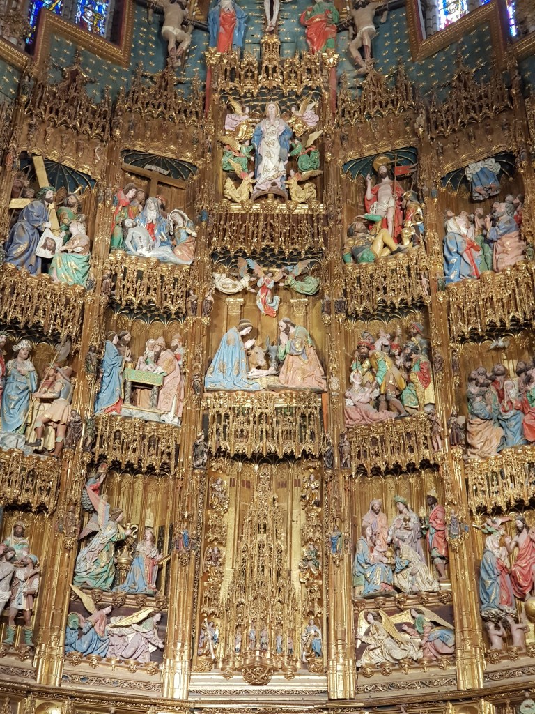 The Cathedral is magnificent. Built in the 13th century, it’s one of the most important Christian landmarks in Spain. It’s kind of hidden away in the maze of little streets and other tall buildings, but once you find it and go inside it’s an enormous, soaring space with rich decorations and beautiful stained glass windows.