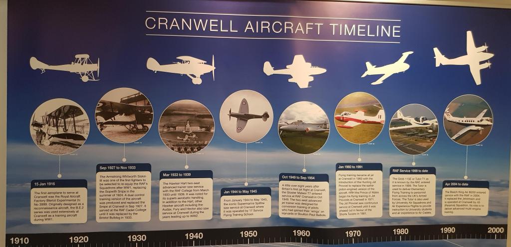 So this afternoon I took myself to the Cranwell Aviation Heritage Museum … not a huge establishment, but packed full of photos, memorabilia, models, posters and simulators telling the story of flight in the UK since the beginning of the 20th century.   The RAF College was built in 1916 as a Royal Naval air base but expanded rapidly and has played a major role ever since in equipping Britain to defend the country from the air.  Planes have ranged from the Bleriot 2c (one of the very earliest flying machines), through a variety of others including the Sopwith  Snipe, the Hawker Hart, the Spitfire, the Hunting Jet Provost and the Beechcraft King Air which is used today for multi-engine training.