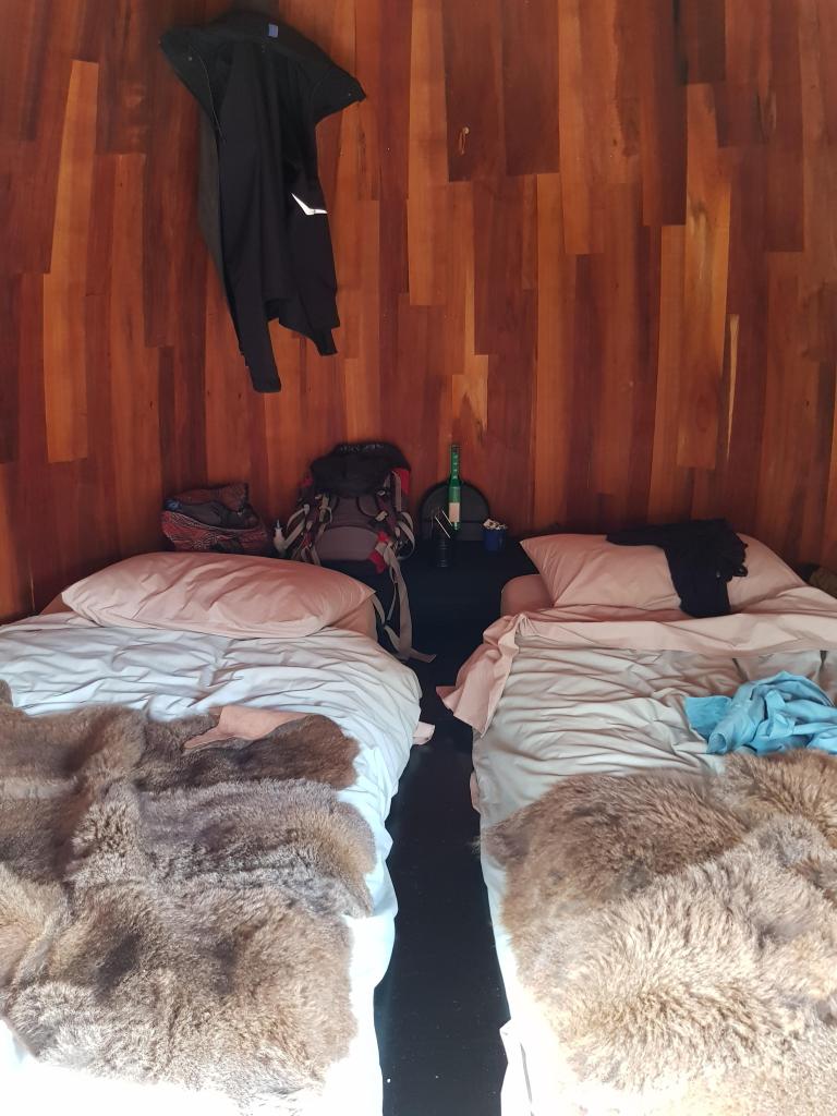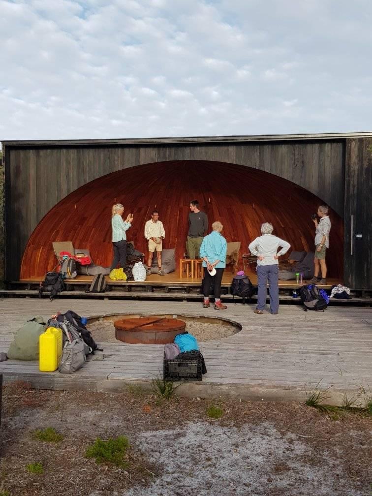 Just like the Camino de Santiago in Spain, there’s so much more to the wukalina Walk than just the walking. For example, being welcomed to Country with a smoking ceremony under the stars was an unforgettable experience for all of us. The fire-pit sits in a clearing in front of the large open dome of the architecturally-designed main camp building. This stunning structure is built from beautiful Tasmanian timbers and was a fantastic sight as we stumbled into camp at the end of the first day. The building extends into a kitchen/dining room, and then bathroom facilities. Wooden walkways lead to the sleeping huts which are built from the same timber and shaped like traditional aboriginal shelters. With comfy beds and kangaroo rugs we spent two nights at this camp (krakani lumi).