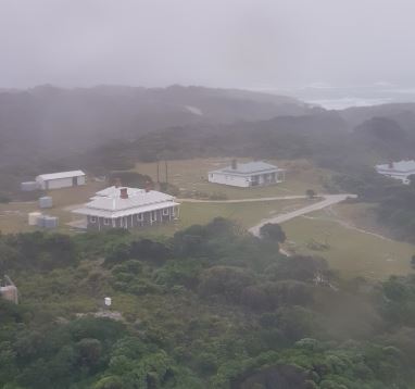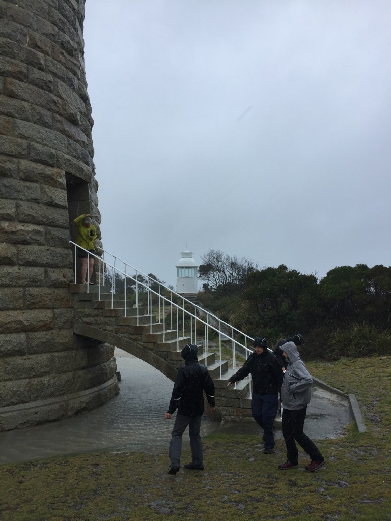 The storms that had been battering the east coast of mainland Australia arrived at larapuna during the night. We woke to gale force winds and heavy rain – and were grateful it hadn’t arrived a day earlier. Despite the wild weather we all made a 5-minute dash for the lighthouse – now surrounded by a moat! – so that we could climb the spiral staircase to the top and look out over the wild sea and the Bay of Fires. Visibility was near-zero but it was worth it.