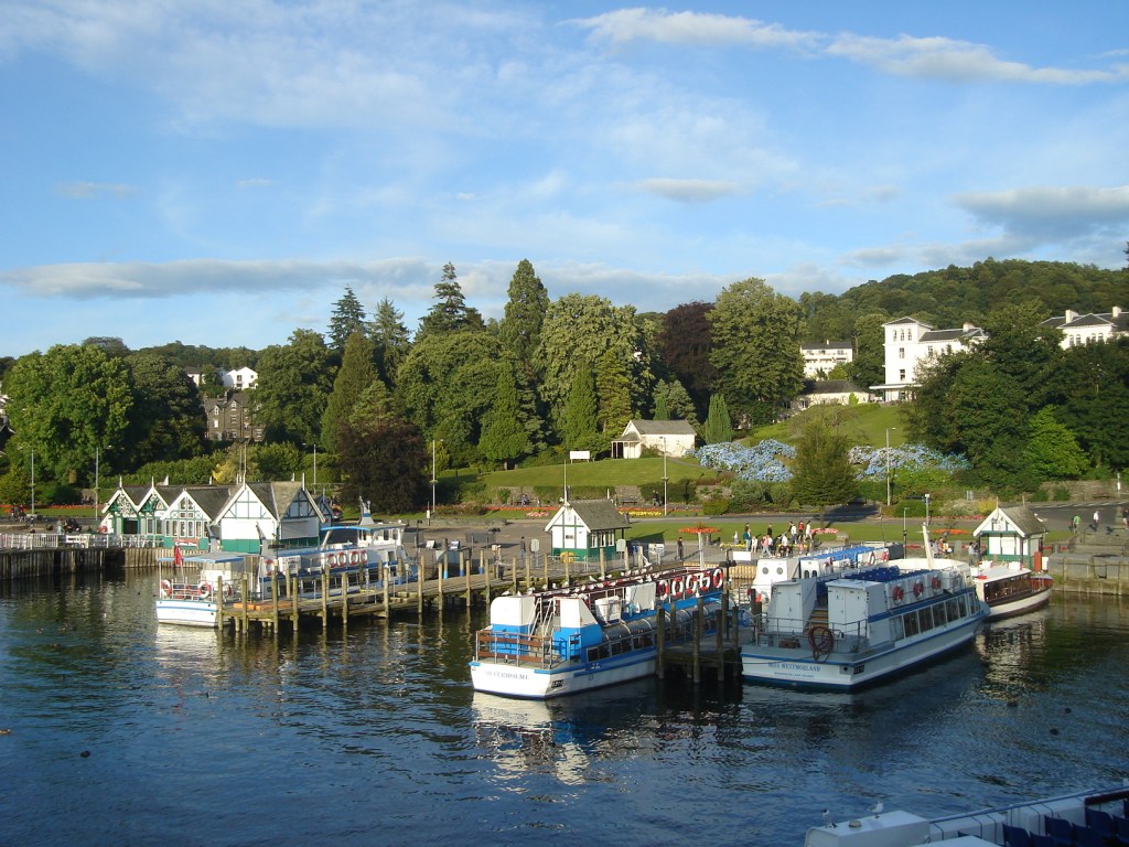 Amazingly the sun appeared as I came down into Bowness on Lake Windermere. Found my pre-booked B&B – a big flower-decked Victorian house – more by luck than expert map-reading. Then with a few hours of daylight left, I strolled down to the lake and browsed all the very tempting touristy shops along the way. It was quite idyllic with dozens of white swans on the lake, and boats of all types drifting or moored down by the pier. Had dinner at a nice pub right on the water’s edge, at a table overlooking the whole lake, and just watched the sun set on this beautiful scene.