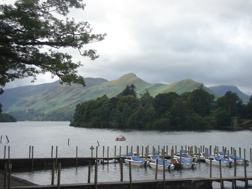 Lakes District (Cumbria): I drove up here on Friday 24 July – a fairly easy drive up the M1, then a left turn across the Yorkshire Dales to Lake Windermere. About 8 hours in total. The road across the Dales was narrow and winding and the scenery would have been stunning if it hadn’t started to drizzle with rain. Old grey stone villages appeared at intervals and there were miles and miles and miles of little stone fences around the fields and high up in the fells. Despite (or maybe because of) the rain and puddles, it was very atmospheric … real Dick Turpin country with lonely farmhouses and little pubs.