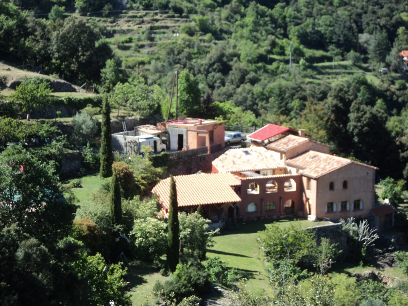 My studio isn’t much bigger than a large caravan, with a tiny en-suite attached. But it opens onto a small wooden terrace that overlooks the whole valley and mountains all around. It’s underneath the main family house and quite self-contained. The house is a big stone cottage that’s been added to over the years, built on the side of a heavily wooded canyon, one of many canyons in the region. Apparently the wild adventure sport of canyoning is a tourist attraction in these parts, but there are signs on the road up here that say that it’s prohibited in Can Guillet, ‘our’ canyon. I don’t think I’ll be trying to explore its higher reaches but it’s lovely to see the rocks and forests out of my windows and to hear the river and waterfalls pouring down.