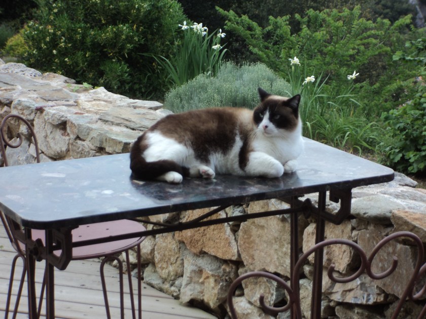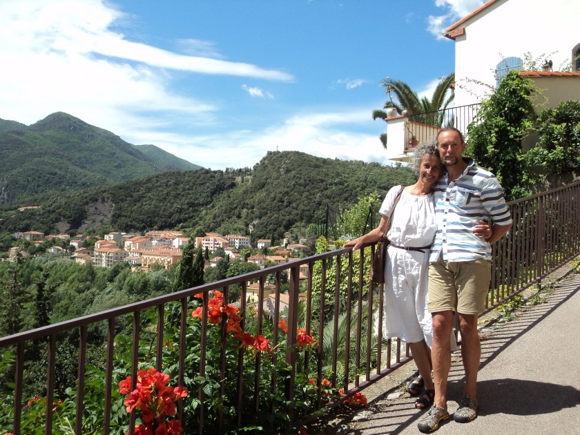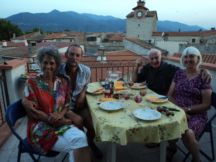 Jocelyne and Jean-Pierre own the beautiful place where I’m living…except that Jean-Pierre has unexpectedly taken flight, after more than 20 years with Jocelyne. This happened about a week after I arrived (though the two events are NOT connected, I hasten to add!). It’s a bit of a mystery because he seemed such a happy, outgoing, crazy Frenchman, and they seemed to be great together. Things have been a little fraught since he left, but Jocelyne is putting on a brave face and seems to appreciate having company around the place… the company being me and one or other of the 2 English guys who’ve been at the house since I arrived. The first one was Robert who’s been woofing around France for many years (Woofing = Working on Organic Farms.. voluntary work for food and board). He had another (paid) job lined up so had to leave soon after Jean-Pierre’s departure, but another helper arrived the next day. He, of course, is Nelson. So, as you can see, all these people are new to me, but we’ve become like a strange little ‘family’ up on the mountain. Jocelyne is lovely, and the 2 Brits have both been gentle, kind, interesting guys. To complete the picture of friends and neighbours, I’ve also really enjoyed meeting Sue and Simon who live in London but have a French home about 10 mins walk from Jocelyne’s place. They’re going back to the UK today but have entrusted me with a key to their house so that I can use their wifi, borrow books etc for the remainder of my stay. This is a huge bonus for me, and very kind of them. Nearest internet and wifi otherwise is 9km away in Ceret…unless I strike it lucky in a bar somewhere