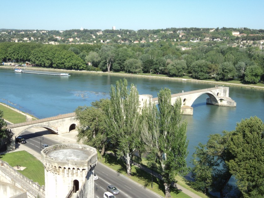 The major sights in Avignon are the Palace of the Popes and the Bridge made famous by the little song (Sur le Pont d’Avignon etc…). I visited both and learnt a bit in the process. Back in the Middle Ages, the centre of the Catholic church was in Avignon, not Rome. The Popes used to travel much more then through their vast tracts of land in Europe to consolidate and expand their dominance. Central France on the mighty Rhone river seemed like a good place to settle down at the time. Over the course of a few hundred years they built their huge palace, adding to and changing it over time. One really has to see it when in Avignon, but I think I’ve just about reached my limit when it comes to more vast draughty halls, stone stairways, ancient kitchens, store-rooms, cellars and chapels. This one was pretty impressive, but they all get a bit the same after a while.