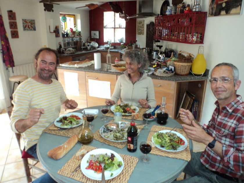 Jean-Pierre, Jocelyne and Robert – sharing lunch up in the house