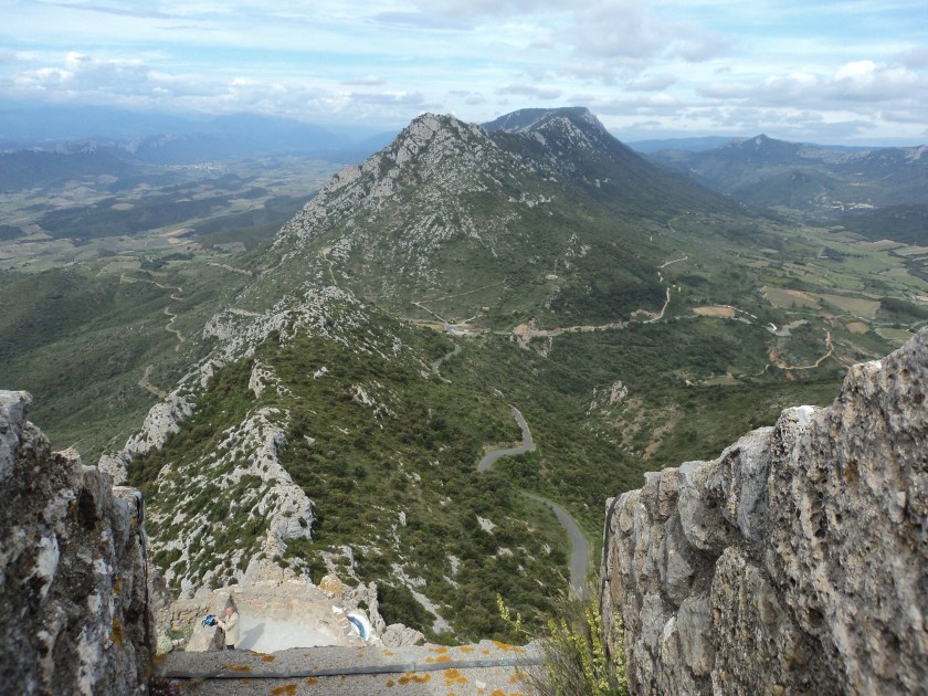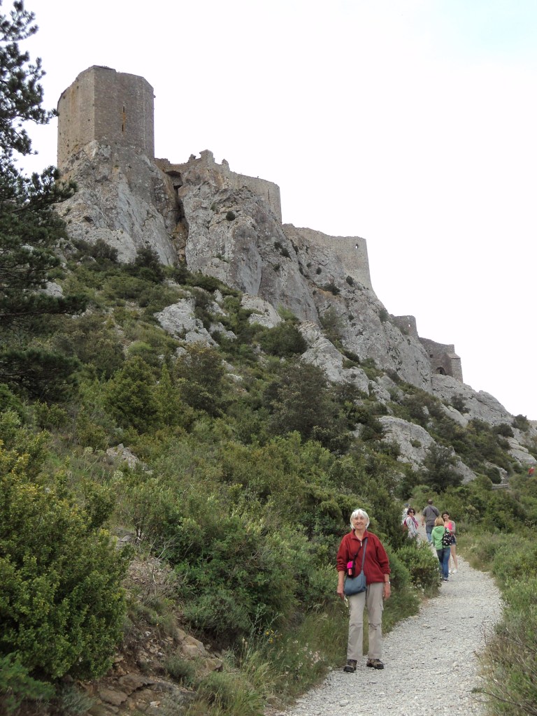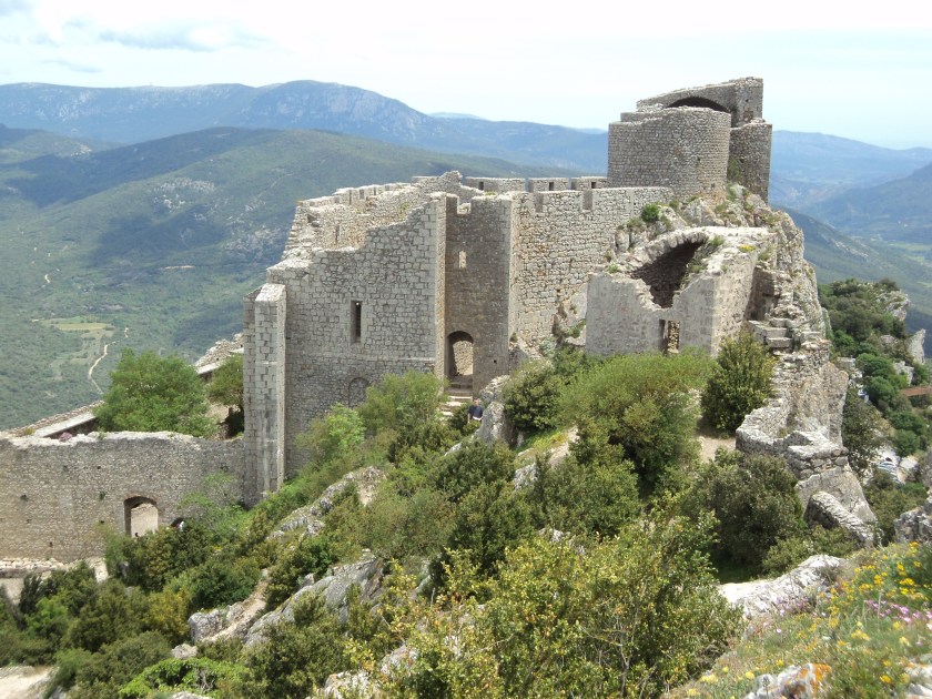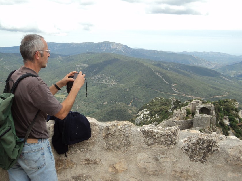 The day the Jean-Pierre drama happened – but before we knew about it – was one of those days when you know you’ve had the privilege of seeing and experiencing something quite special. Robert and I had borrowed the car to drive up to the Cathar castle region, about 2 hours from here – and we got to climb up to the incredible ruins of Queribus and Peyrepertuse, a couple of the last bastions of safety for the Cathars before the armies of the Popes and French kings destroyed them for ever. The castles (more like forts) date from around the year 600, and while they weren’t owned by the Cathars, they provided shelter for them during the days of the inquisition and mass killing. The Cathar story is one of the most tragic and brutal of any history I’ve ever read. I’m at a complete loss to know why I’ve never heard it before. The Roman Catholic church of the Middle Ages was hell-bent on expanding its power and dominance, so the tyrannical popes and their henchmen bishops, cardinals and noblemen set out to torture, rape and murder anyone they deemed to be heretics or non-believers. The Cathars were a peace-loving, Christian people who lived a simple life opposed to the material wealth and power of the church of Rome. And Languedoc (this region) was where their faith and culture was strongest. You need to read about the prolonged massacres, sieges and tyranny that occurred during the 12th century to get even some idea of the evil that was carried out in the name of Catholicism. I picked up an amazing book in Carcassonne that tells the whole story – brilliantly researched and very readable. It’s called “The Perfect Heresy” by historian Stehen O’Shea.