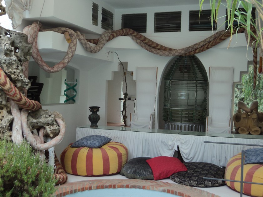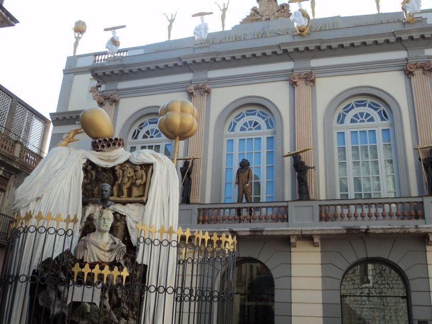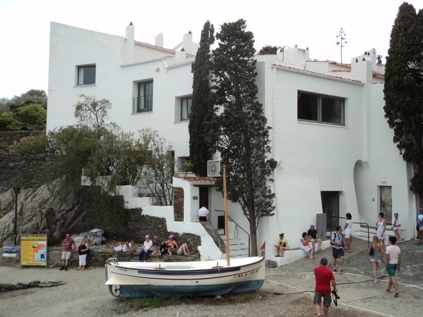 My second Escapade (what they call these bus trips) was to Empiabravura and Figueres in Spain, about an hour away. Ben (my son) and I enjoyed Figueres and the Salvador Dali museum when we were there 2 years ago. Wish he could have been here this time too. First stop, Empiabravura, is an amazing, over the top artificial kind of brash tourist place, with over 30 km of canals snaking their way between white wedding-cake type houses, and boats of all shapes, sizes and bank balances motoring around. If you think you’ve seen floating palaces anywhere, believe me, you ain’t seen nothing until you’ve seen Empiabravura…..though I wouldn’t recommend it to anyone. It was so good to get to Figueres which, despite hordes of camera clicking tourists, and souvenir shops with every Dali icon imaginable, is still rather a charming, quirky old city. And it has one of my most favourite museums in the world….the Dali Jewels. I loved this collection so much when I was here the first time I even bought the TV shirt. So it was wonderful to have another opportunity.. the sublimely beautiful diamond and sapphire ‘eye’ is still one of the most perfect things I’ve ever seen. Salvador Dali was truly a genius, whatever one thinks of his surrealist paintings, and his influence on the art in the streets of Figueres is evident everywhere. I’m very much looking to another bus Escapade in a week or so to Cadaques where he lived for most of his life.