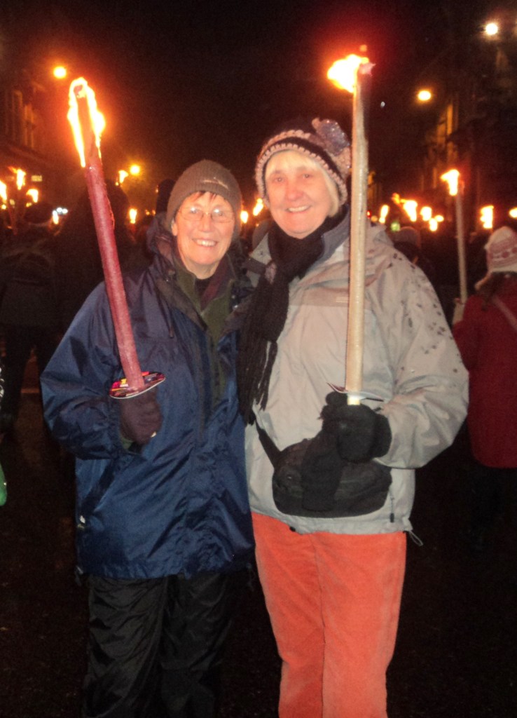 In Keswick next day (Monday 27th) I didn’t go to the Pencil Museum, but did meet up with Penny as planned. She’d caught the train from Edinburgh to Penrith, then come on down by local bus. We’ve lost count of the places we’re travelled together or met up in since the 60’s, but over the next couple of days we added to our joint photo collections of posing together in far-flung places. We caught up on latest news over coffee back at Dove Cottage and then drove back through Lakeland in sunshine, across the lower Yorkshire Dales, home to Huntingdon.